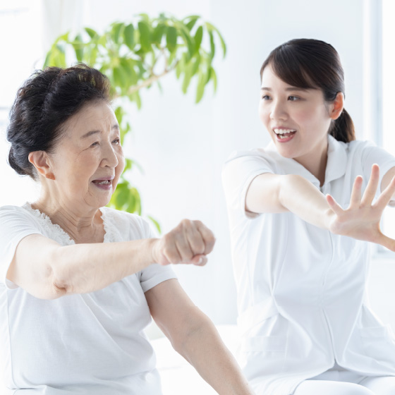 リハビリテーション科とは、病気やケガによって何らかの障害をもった患者様に対し、医学的治療や治療的訓練を実施する診療科です。失われた機能の回復を促すとともに、残された能力を最大限に引きのばすための治療や訓練を行い、患者様が家庭復帰や社会復帰できるよう援助します。